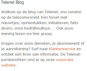- Sociale media is tegenwoordig zeer belangrijk en niet meer weg te denken uit deze maatschappij. De site van Telenet's zakelijke blog nodigt zéker uit tot actie. Denk maar aan de knoppen zoals 'deel dit op facebook', 'deel dit op Twitter', enz...