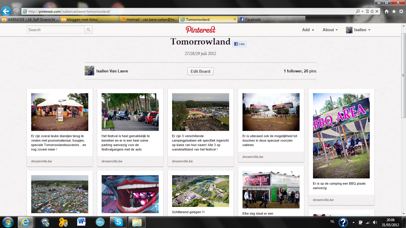 Onderaan deze pagina kan u de link naar mijn online prikbord terugvinden waarin ik Tomorrowland promoot. Hiervoor heb ik gebruik gemaakt van Pinterest.